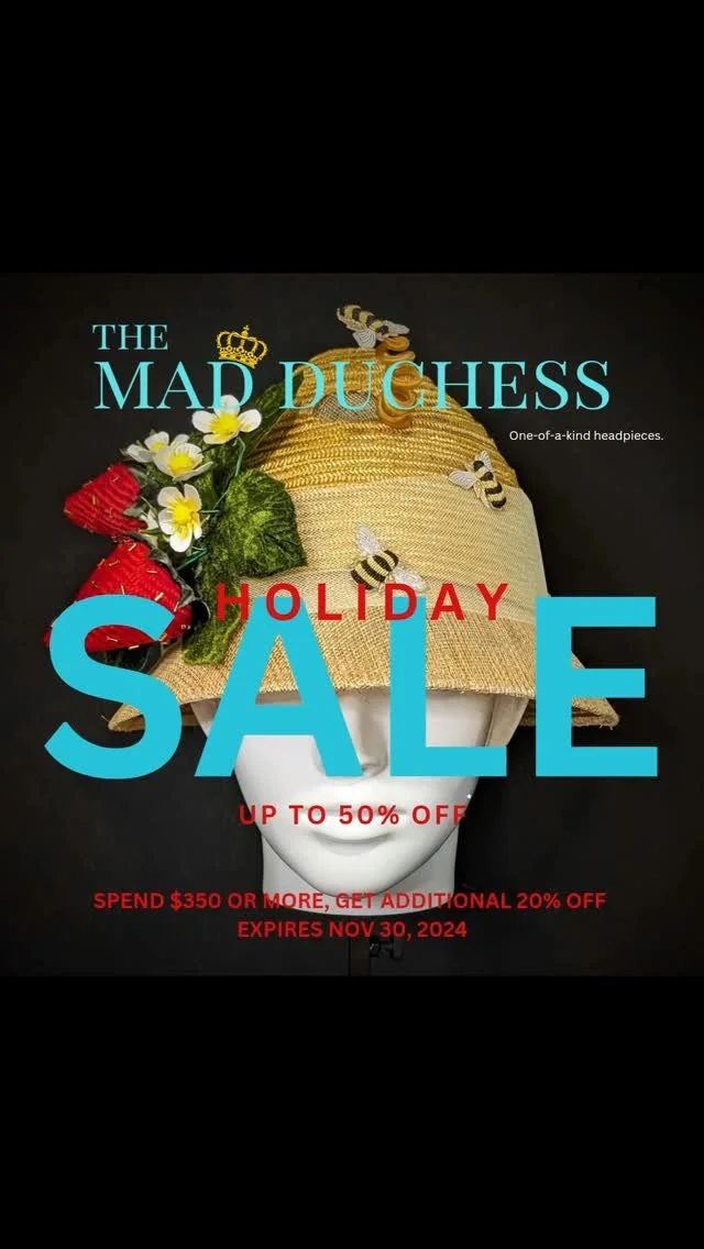 We’ll start with an email. Then, if it feels like a good fit, we’ll connect over the phone and finally on Zoom to brainstorm the perfect hat for your ensemble. Once your piece arrives, I offer an optional follow-up call for styling tips and placement—I’ll be there every step of the way.